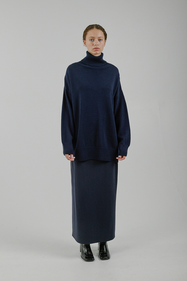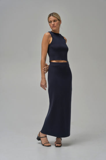 The perfect everyday ribbed-knit skirt that we cut to give a 'column' effect on the body (i.e. it's extra flattering). High-waisted with elastic opening. Medium-heavy weight knit.