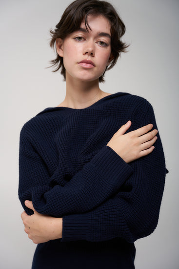 The Sailor Sweater was made using a very special quilted knit pattern in 100% Italian Merino Wool.