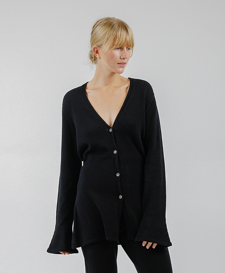Medium-weight knit cardigan made from the softest, most durable cotton available: 100% Egyptian. Flared Cuff.