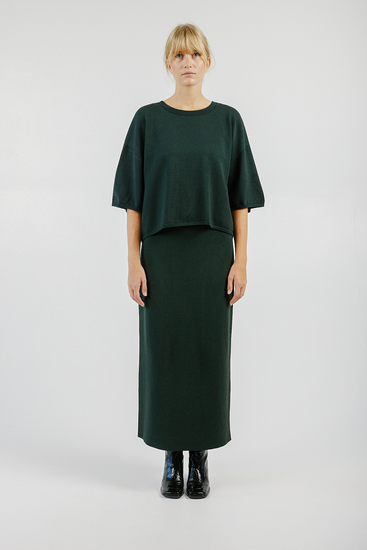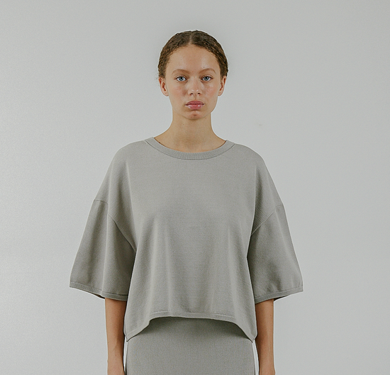 A t-shirt, but made of sweater material. We knit this specifically to create a beautiful silhouette.