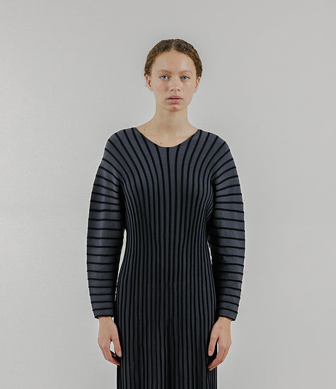 A very special two-tone vertical knit created in honour of avant-garde fashion designer Emilie Flöge. We cut this dress to be super flattering, just as Emilie would have done.