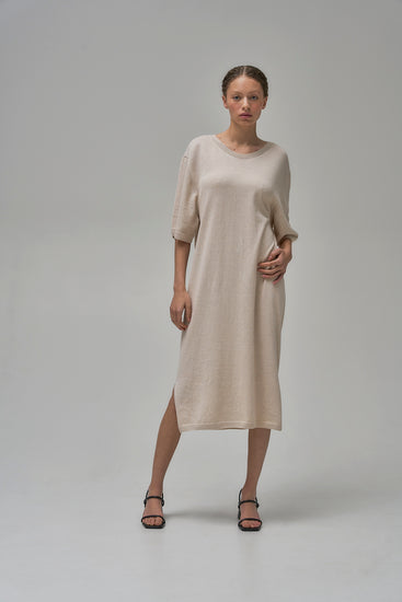Oversized Fit. Intricate chain-link knit cuffs, neckline, and hem.